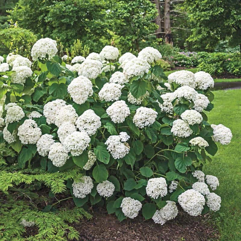 Expect for this plant to have clusters of small white blooms that appear in midsummer and gently fade to a wonderful shade of green. Annabelle Hydrangea shrubs bloom without fail each season to create a bold statement for the landscape. It's great for dried arrangements, too! Expect for Annabelle Hydrangea shrubs to be adaptable, surviving soil of all different kinds of pHs, and durable, with blooms lasting all through summer and sometimes through fall and winter. These blossoms can also grow up to be a foot across, making them a great statement piece for your garden. Annabelle Hydrangea shrubs need to be pruned once a year to remain healthy, so make sure to trim them back so their beautiful blossoms can return time and time again. Hydrangea arborescens 'Annabelle'