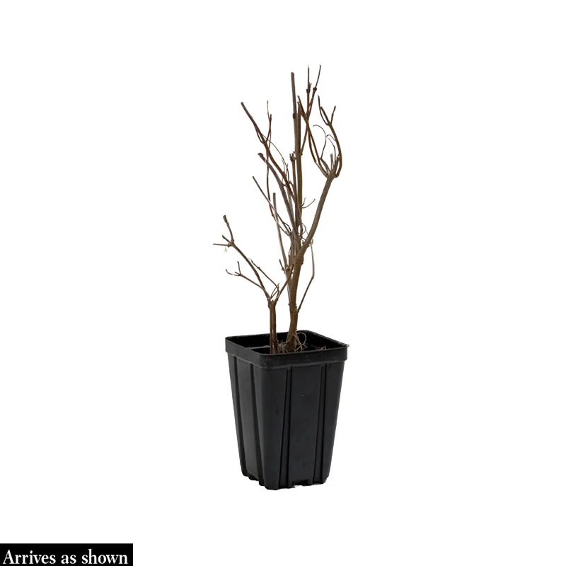 Brand new—fresh out of Research and Development with the Gardens Alive team—we're proud to announce home gardeners can find the extraordinary rebloomer, Be Right Back Lilac, here at Spring Hill Nurseries first. Reblooming lilacs add a beautiful second round of color to your garden, but for most cultivars, the second show is not quite as robust as the first. Be Right Back's rebloom is especially full and vigorous, basically on par with its first. It also boasts a larger flower size than other reblooming lilac, so you get two huge pops of color per year with this shrub. You'll love this lilac's performance. The flowers are so pale compared to the dark, dark buds, and this color contrast grabs attention as each panicle starts to bloom. The plant is very tolerant of poor soils, thriving where other lilac's cannot. It's tidy and decently compact making it a nice hedge. Syringa hybrida 'GARlisabzar' PP31899