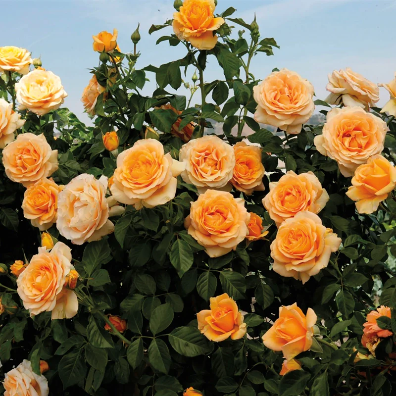 Your garden will reach new heights with this exceptional climbing rose from renowned hybridizer Tom Carruth. Each 3.5-4" flower head contains 35-45 petals and gives off a deliciously fruity scent that attracts butterflies and other pollinators. Its vine-like stems and foliage can take this beautiful rose to heights of over 10' tall. Plant Golden Opportunity wherever you'd like to add vertical interest. Try it on sunny patios and pergolas, or add it to border gardens. The roses make a charming addition to cut flower arrangements, too. Rosa cv.'WEKausujucton' PPAF